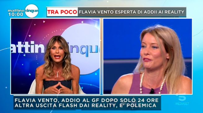 Dopo aver abbandonato il Grande Fratello Vip 5, Flavia Vento è stata ospite in vari programmi. La showgirl oggi è stata ospite di Federica Panicucci a Mattino 5 dove ha avuto un duro scontro con Arianna David. Le due hanno condiviso la stessa edizione de L’isola dei famosi, reality che anche quella volta Flavia Vento abbandonò dopo pochi giorni.