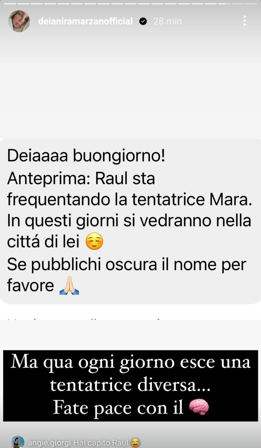 In queste ore, infatti, l’influencer Deianira Marzano ha ricevuto un’ennesima segnalazione che riguarda Raul. Nello specifico, pare che il ragazzo stia frequentando un’altra tentatrice ancora di Temptation Island, ovvero, Mara. Anche in questo caso pare che la conoscenza sia piuttosto seria dato che sono trapelati ulteriori dettagli.